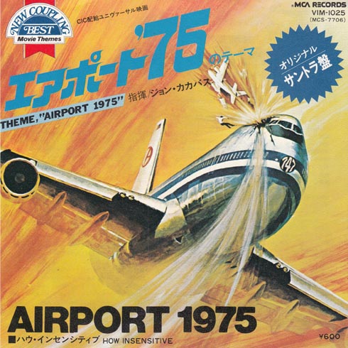 エアポート'75っていう映画のサントラ盤ですね。見たことはないのですが、ダイジェスト版を見るとジャケットのように自家用の飛行機が747の運転席あたりにぶつかってパイロットが投げ出されて走行不能になるっていう映画らしい。CAが運転するっていう、そんなことあるんか?という映画です。エクソシストの彼女もいたりしてちょっと怖さも増量しています。しかしこの絵では自家用の飛行機は何でもないように見えますけどね。