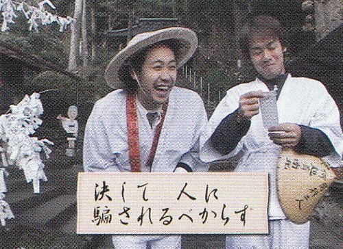 このお寺でおみくじを引いたんですね。おみくじを引くところは結構あると思うんですけど、放送されているのは少し。しかもすべてが面白くおみくじ引きたいなぁって思う。今回のリーダーのおみくじには「深き山中にて道徳を修するをいう」道徳を学べと。そして洋さんは「この人は心正直にて人の偽りにのりて苦しむことあり 決して人に騙されるべからず」人というのは誰だかわかる。藤村って書いてある。と洋さんは言ってました。確かに。