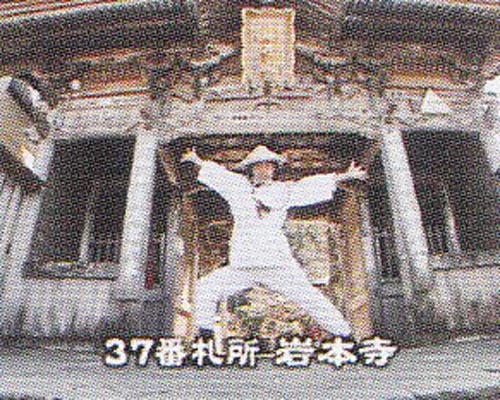 これは山門で奥に本堂がありますが、3回ともここで撮ってますね。大きく洋さんはポーズをとっております。このお寺には「三度栗」というのがあって1年に3回実をつける栗の木があるんだそうな。結構ほかの地方にも合って、弘法大師空海が諸国巡礼の折に子どもがひもじいからとか、空海に栗を分けてくれたからとかでたくさん実がなる栗の木ができたらしい。そういう栗の木が実際にあるらしいです。静岡県では徳川家康が同じことをしたという伝説もあるんだそうな。偉人ってすごいね。