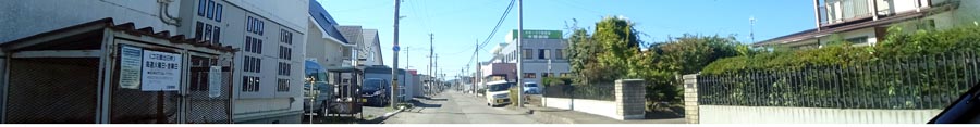 | 野付牛自動車学校前の南岸通りから教習コース側。正面奥は無加川の堤防、写真右奥が北見駅方向。 |