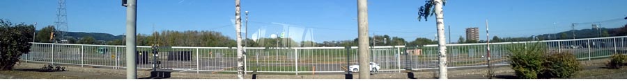 | 常磐通りから北光小学校。正面はひまわりが一面に咲いていましたが、刈り取られたようです。写真奥が市街地方向。 |