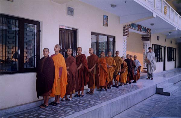 仏教徒の寄宿舎学校。早朝5時からのお勤めが終わり、ただいま、朝食待ち。