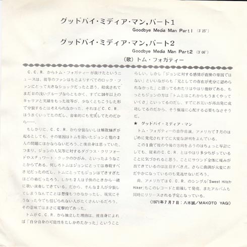 CCRを脱退したトム・フォガティーさんの1stシングル。アルバムには入っていないみたい。聞いてみると、なんか実験風な感じでしたねぇ。CCR自体は雨を見たかいなどで有名ですね。解説によると弟のジョンフォガティさんと確執があったようですね。大変な評判を呼んでいるって書いてますけど、トップ100に入らなかったとネットでは書かれていました。解説は昨日も登場のラジオDJの八木誠さんでした。