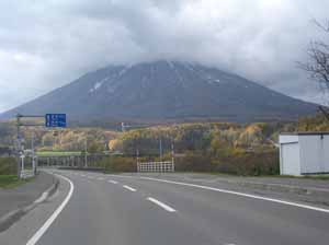 真狩に行く途中の道道から見た羊蹄山。すでに冠雪してますね。