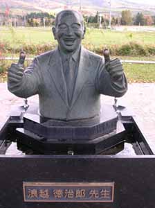 帰りは真狩→留寿都から中山峠へ。留寿都の道の駅で見かけた像。あの「指圧の心母心」の浪越像がありました。アタマのてっぺんには鳥のフンが、何とも・・・。