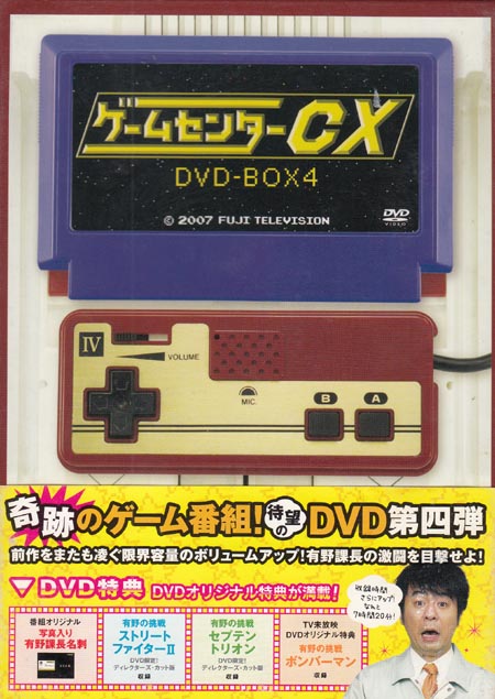 | ゲームセンターCXDVDBOX4 ゲームセンターCXは、我が家がスカパーに(多分ディレクTVがあったころから)相当前から入ってまして、よく見てました。んで後半のお気に入りはこれだった。ゲームセンターCX。たぶん魔界村あたりから見てると思うなぁ。最初はつまらなかった。でもだんだん有野さんがきちんとやるようになってすべて録画してみてた。その中でもセプテントリオンの回が面白くて。「集団行動」とか「私立校か?」とかね。有野さんのセリフの読み方も面白かったし。実際やってみてかなり難しいのがわかりました。セプテントリオンが入っているDVD。傷ありの1100円で買いました。でも見てません。見なきゃぁ |