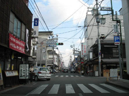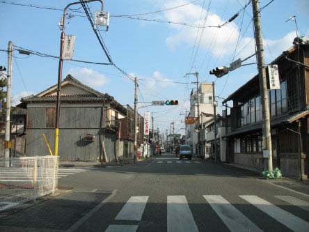 乾新町交差点 直進は商店街、左折は新篠山警察署方面