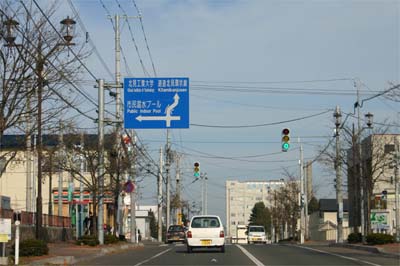東陵町、セブンイレブン近辺。写真奥の建物は、北見工業大学。