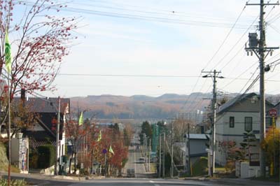 柏陽高校グランド横の通り。坂を降りて直進すると国道39号。