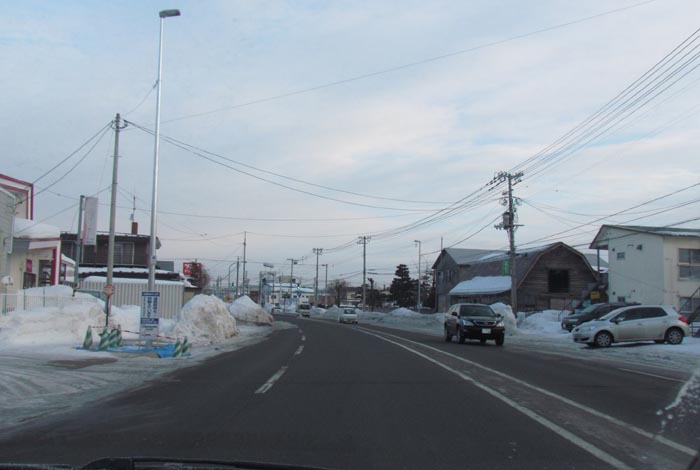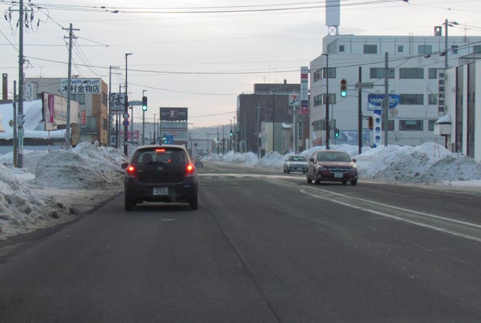末広町の南岸通り、西4号線バス停前から野付牛自動車学校方向