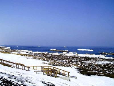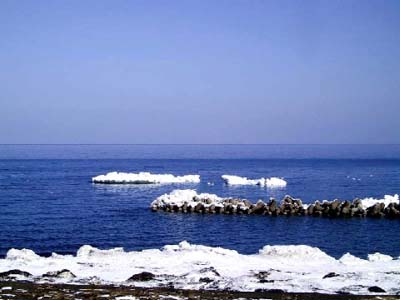 | 2001.3.24 9:00 そろそろ海明け宣言? 流氷も、常呂、網走、斜里、ウトロにわずかに見える程度になったようです。 海岸線に残った流氷が、天気に生えてとてもきれいでした。 もう、ほとんど流氷はありませんね。砂浜も少し顔をのぞかせています。 たぶんもう水平線あたりから、戻ってくることはないでしょう。 ちょっとさびしいですね。 |