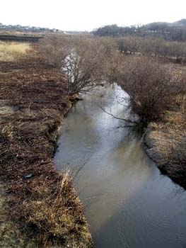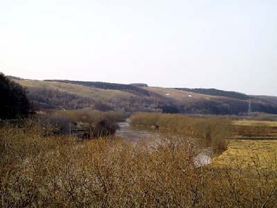 | 2001.4.17 6:00〜 春を感じて、いつもの常呂大橋へ朝の散歩に出かけてみました。 農協牧場に、わずかに残る雪が見えるくらいです。 |
