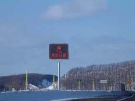 | 2.女満別→美幌 「凍結注意」の掲示板は、気温も表示。 |
