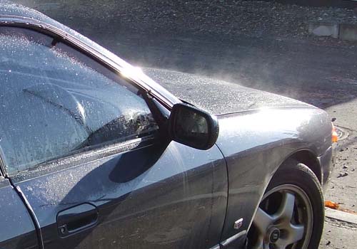 車についた霜が、ものすごい勢いで溶けて、水蒸気になっています。