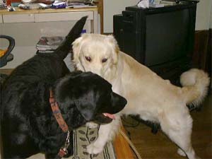 ![]() 我が家のゴロウ(黒)と、預かったモア。 |