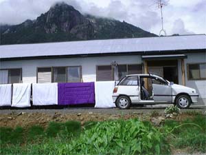 ![]() Iさんが自力で建てた家。 背景にはモッチョム岳。 |